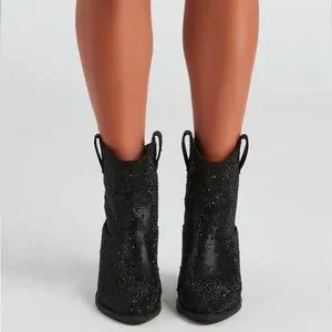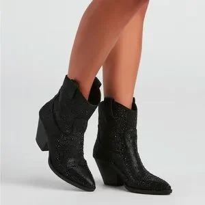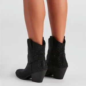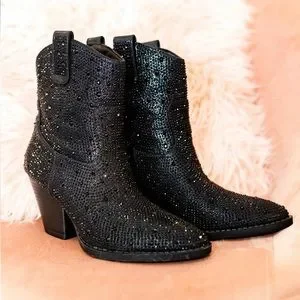 NEW Black Western Style Bedazzled Cowboy Ankle Boots