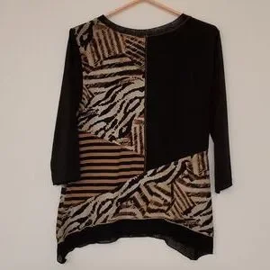 JM Collection Animal print multi-textured collage top 3/4 sleeves petite medium