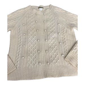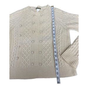J. Crew Women's Small Lambswool Popcorn Pom Cable-knit Fisherman Sweater HTF