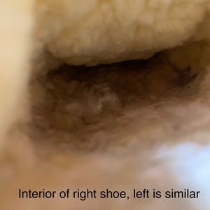 @tbjg76 The wool under the ball of the foot is slightly more compressed than the rest of the foot in both shoes. I attached another picture of the interior of the shoe so you can have a better idea of what it looks like.