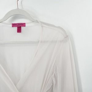Betsey Johnson Chiffon Sheer Tiered Ruffle Wrap Robe OS V-Neck Sash Tie Belt