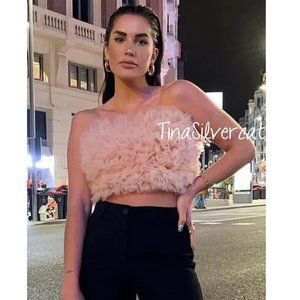 BLOGGER'S FAVE! Zara Knit Strapless Tulle Top Pink NWT