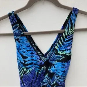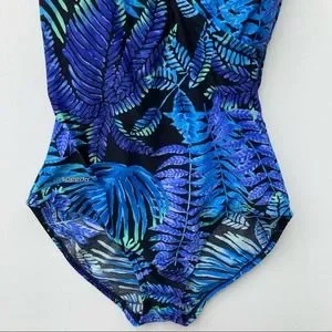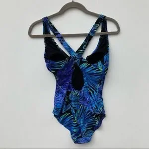Speedo Size 6 One Piece Swimsuit Blue Floral Fern Leaves Botanical Bathing Suit