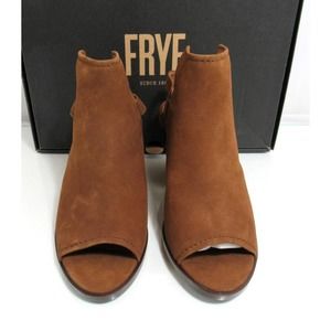 Frye Dani Shield Slingback Sandal Heels Open Toe Suede Wood Brown Size 9
