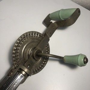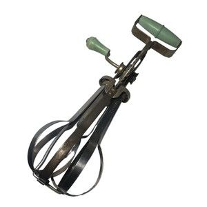 Vintage Blue Whirl Egg Beater Mixer Stainless Steel Mint Blue Green Handle