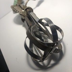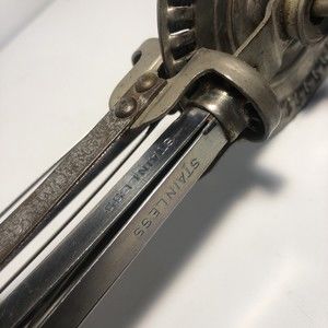 Blue Whirl Egg Beater Mixer Vintage Stainless Steel Mint Blue Green Handle.