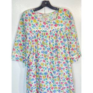 Vintage Miss Elaine Classics Floral Robe House Dress M Full Zip Lace Modest