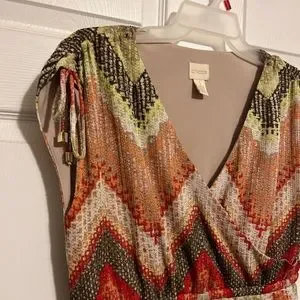 Super cute chevron knit maxi dress. Chico’s size 1. I wore when I was in a women’s size 6. V neck and cute metal detail on the shoulder.