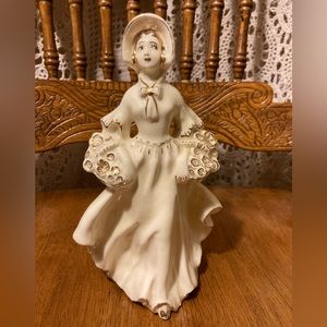 Vintage Gilded Lady With Floral Bouquet Baskets