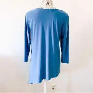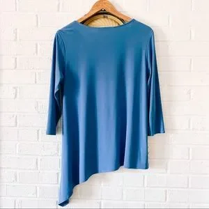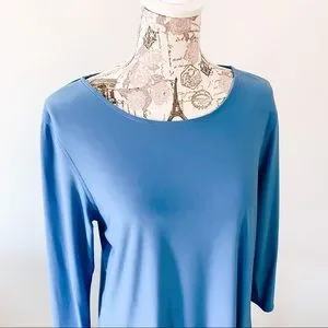 Caroline Rose asymmetrical hem shirt in Carolina blue. 3/4 sleeves. Size xs. Made in USA