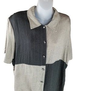 Vintage 80s Alfred Dunner Button Up Short Sleeve Shirt Top Women 22W Colorblock