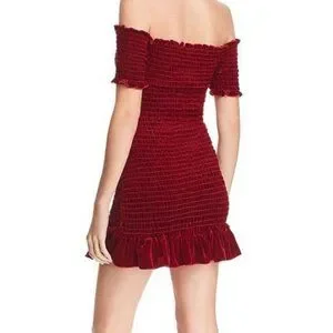 Aqua Brand Dress Burgundy Fitted Wide Neck Size Large L Above Knee Ruffle NEW