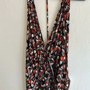 Free People Daria Halter Maxi Dress Size L Black Orange Low Back Wrap Slit Plun…