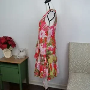 N Natori NWOT Bright Ruffle Floral Asymmetrical Sleeveless Tropical Dress