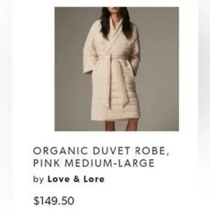 NWT Organic Duvet Robe Love & Lore, Pink Small / Medium