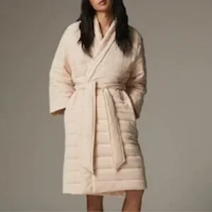 Style that speaks volumes. The Love & Lore Organic Duvet Robe brings luxurious cloud-like comfort to your everyday routine. The lounge coat you'll want to live in, this dreamy at-home must is tailored from a beautifully quilted 100% organic cotton jersey and features a padded recycled polyester fill lining to add just the right amount of weight and warmth. A relaxed fit in an easy-to-wear silhouette closes with a belt tie, and two in-seam pockets lend favourable function. Experience the cozy comforts of your bed all day long—you deserve it. Size: Small-Medium. Love & Lore is inspired by literature and creative women of the past and present. Modern and romantic, each Love & Lore piece proves style, sustainability, and substance can live happily ever after. 100% organic cotton jersey. Lining: 100% recycled polyester fill. Exclusive to Indigo.