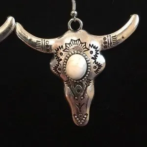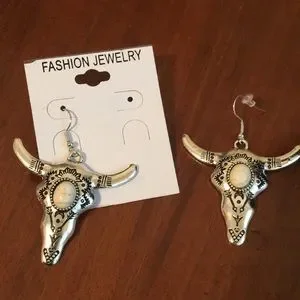 Accent your western outfit with these Silver bulls head earrings with western engraved designs and ivory stone in the middle.