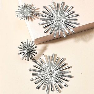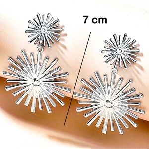 Any 2/$20! Silver Double Starburst Statement Party Drop Stud Earrings