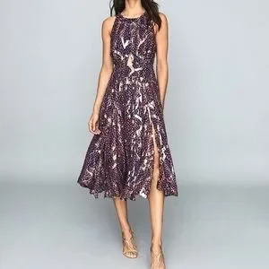 NWT REISS | $465 Tammy Lamé Printed Midi Dress