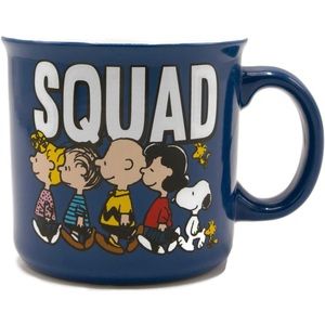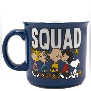 COFFEE MUG: Our novelty Peanuts squad ceramic Mug holds 20 ounces of your favorite hot or cold beverage and keeps it at a comfortable temperature, The mug's design features your favorite characters; Sally, Linus, Charlie, Lucy, Snoopy and Woodstock