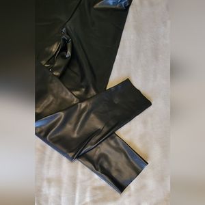 Soft, smooth lined leather leggings with unhemmed cuff.