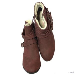Just Fab Women Burgundy Side Zip Heeled Triple Strap Yarah Ankle Boots