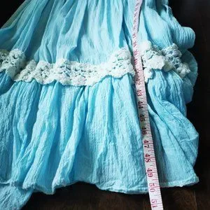 Artisan crafted and created. It's a gorgeous blue with cream lace insets.