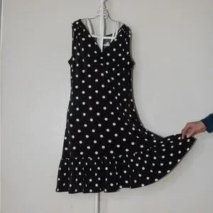 White House Black Market WHBM Black with white Polka Dot Dress- ruffle hem- Brand New With tags- Super Cute! Cleaning out the closet and realizing I have a shopping problem. :)