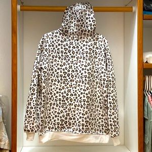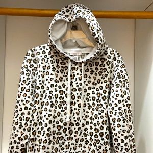 WHITE CHEETAH PRINT PULLOVER HOODIE~NWOT~MD-FRONT POCKET