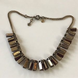 J.CREW MIXED PRISM NECKLACE BROWN GOLD Tone Wood Pyramid Faceted Crystals.