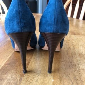 Cole Haan Nike collaboration heels. Nike Air in the sole gives extra support. In a beautiful navy blue suede. 4.5 inch heel. In good condition with some wear on the bottom as seen in pictures.