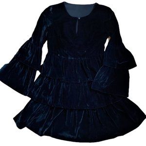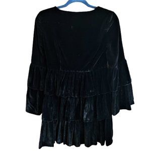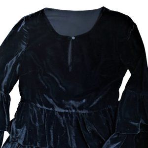 Vintage ruffles tiered black velvet dress