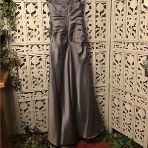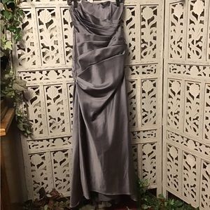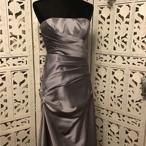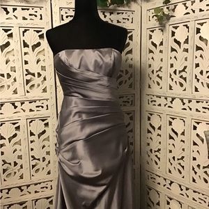DAVIDS BRIDAL BEAUTIFUL PLATINUM SILVER STRAPLESS LONG FORMAL PROM DRESS GOWN