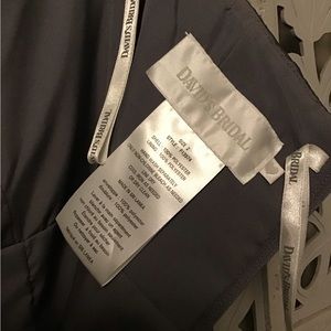 David’s Bridal beautiful platinum silver gray strapless long formal dress gown, tiered bodice, pretty rouched (gathered) layers, fitted bodice, zipper in back, minor discoloration under arms & on skirt midway down in ruffles (as pictured) no snags or tears, dry clean to freshen, see all pics per additional description… flat approx measurements (Sz/2) (avg bust 30/32) (waist 24”) (hips 34”) (length pit to floor 60”)