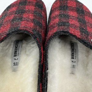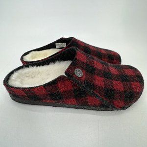 Birkenstock Zermatt Rivet Women’s 8 Wool Clogs Narrow Unisex Slippers Plaid Red