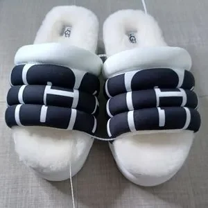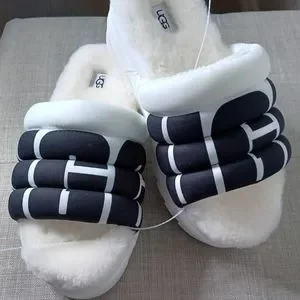 UGG Maxi Slide Logo Women's Slides Slippers White & Black UGG Logo Size 7 New