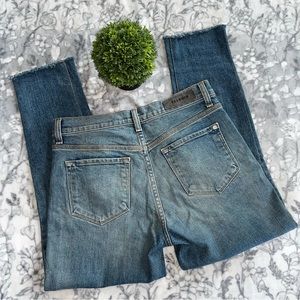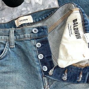EUC. Clean & in Excellent New Condition. No flaws & no signs of wear. Baldwin Kansas City; The Maxwell Cropped Kick Flare. High Rise. Vintage look. Button Fly. Ridged thicker Denim. Raw hem.