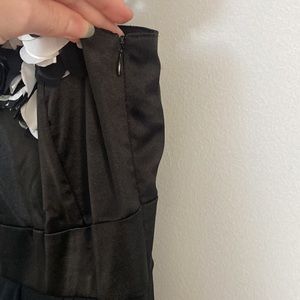 Black dress with decorative floral feature. Zips up from the side. Size 8