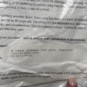 Military Grade, Tan Wool Sweater, New In Bag - Size L