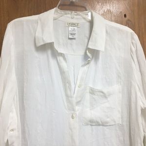 Awesome L*Space Lisboa Tunic, Sz Large. It's New with tags but there's some light dust/dirt along the bottom from hitting the floor and a pinhole at the top of the back where the sensor tag was..see the last 2 photos.. they're minor.