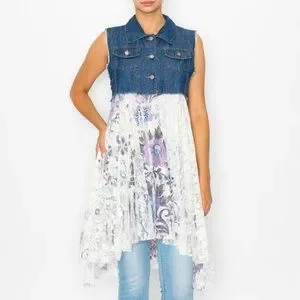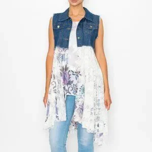 DENIM VEST WITH LACE LAYER