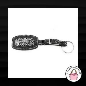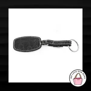 STRADA BLACK CROC LEATHER BUCKLE STRAP NICKEL FOB BAG CHARM KEYCHAIN HANG TAG