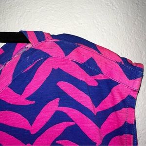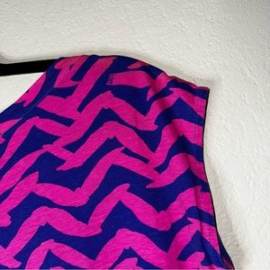 Lilly Pulitzer Robyn dress in pout pink Get Lucky. Royal blue and hot pink chevron stripes. Short cap sleeves. T-shirt style.