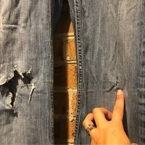 Please see photos for condition distressed/rips in legs