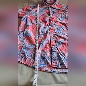 American Eagle men's Hawaiian shirt short sleeve button up size XL Red & Blue palm trees leaves