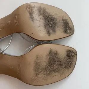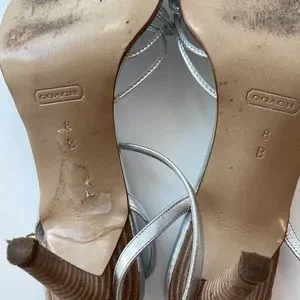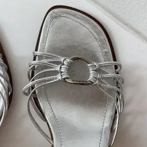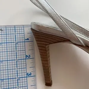 Made in Italy. Leather upper and sole. Stacked heel at 3.5 in