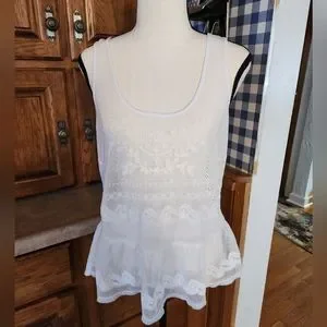 American Eagle Outfitters Cream Embroidered Overlay Tank Size M