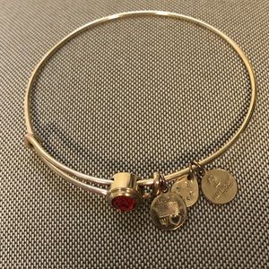 Alex and Ani Light Siam Birthstone Charm Gold Tone Bangle With Swarovski Crystal