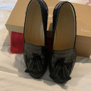 Worn once Christian Louboutin Badmoc flat loafers Leather alligator embossed so cute