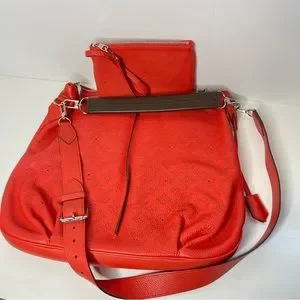LOUIS VUITTON Mehene MM Mahina Orange Shoulder Bag with Pochette
